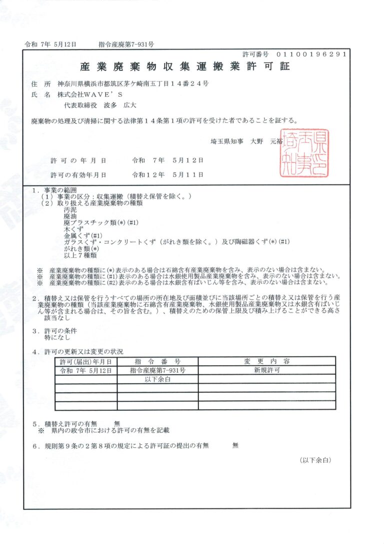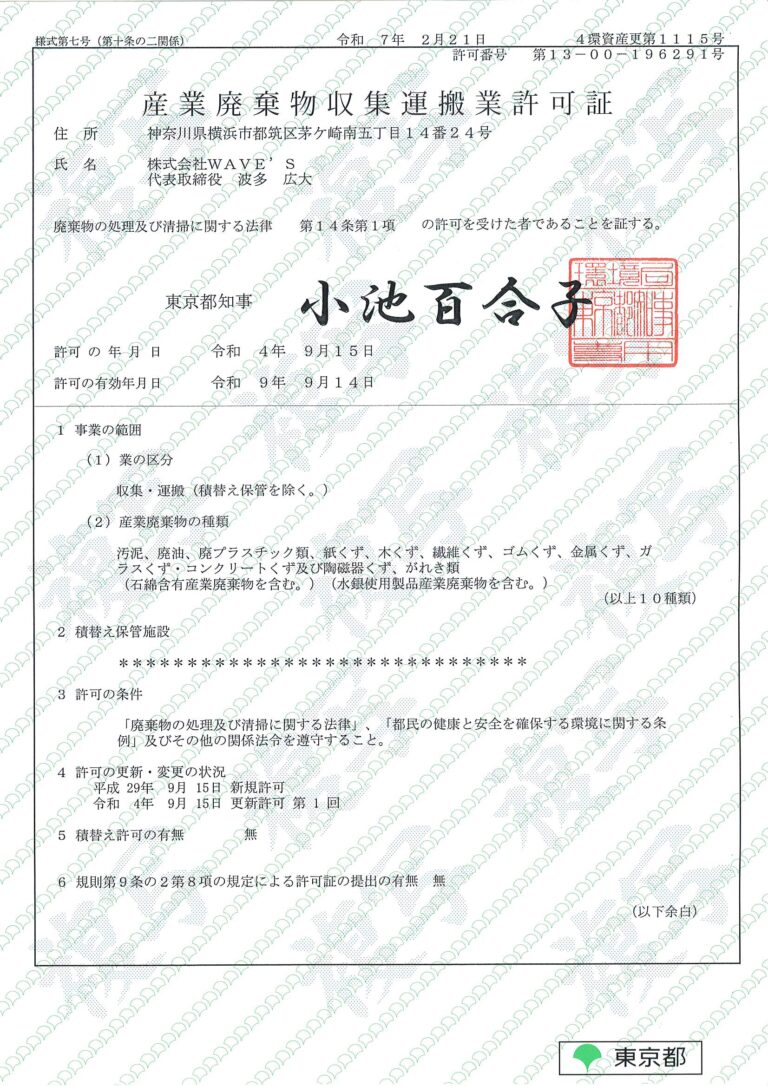 産業廃棄物収集運搬業許可